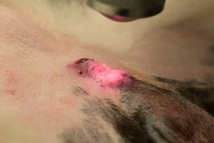 In addition to using the carbon dioxide laser to perform the surgery, we use the companion laser to aid the healing process at the incision before our patient is fully awake. This decreases post operative swelling so your pet is much more comfortable. When combined with the actual medication for pain we administer, our patient wakes up with minimal to no pain, and the healing process progresses faster.