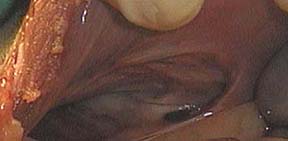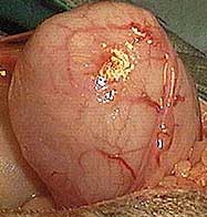 Here he has exposed the urinary bladder and is looking for any signs of problem
