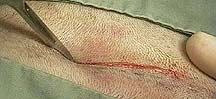 Sundance had no other abdominal organ trauma, so his rectus sheath and skin were sutured back together.