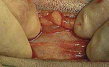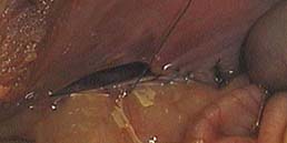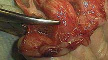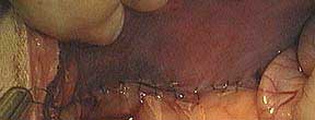 You can view the partial closure of the opening in this picture as Dr. P sutures the muscle from right to left in the picture.